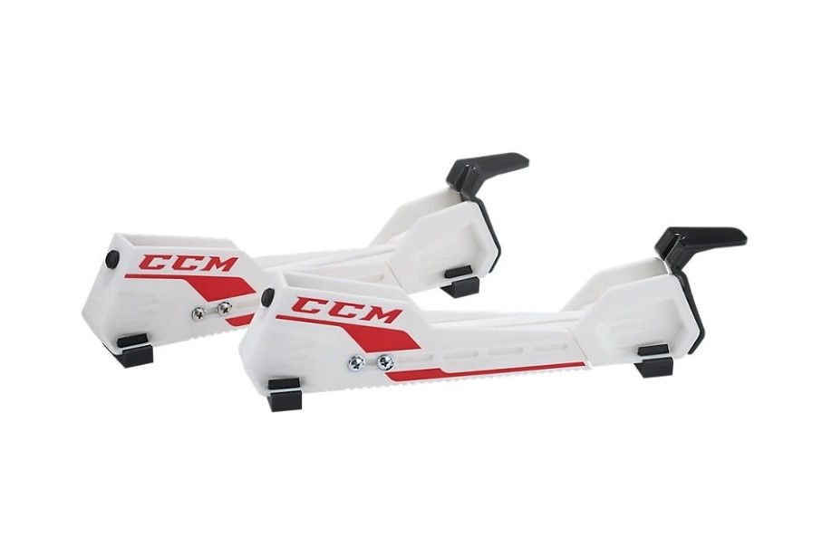 Nejkomfortnější chránič bruslí s nastavitelnou délkou, univerzální pro všechny typy a značky bruslí. Nový model. Maximálně pohodlné nasazování chrániče, vložíte patu brusle do chrániče a došlápnutím špičky jen zaklapne pružná část chrániče. Pohodlná chůze s chrániči, díky gumovým "patkám" na spodu chrániče. Snadné nastavení velikosti i její následná změna pomocí šroubků. Použitelné pro velikosti bruslí JR1 až SR12. Chrániče jsou vyráběny pouze v bílé barvě, viz. obrázek, logo CCM