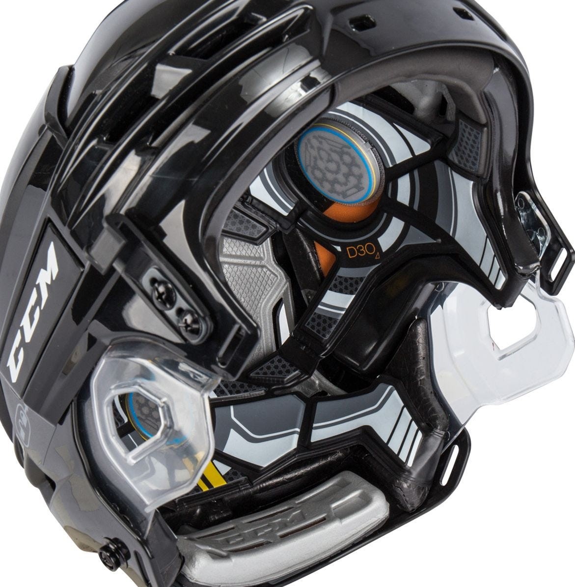 Špičková HELMA CCM Tacks 910 Combo. VYCPÁVKY FLUID INSIDE A TECHNOLOGIE D3O®: Nové vycpávky Fluid Inside, které jsou strategicky rozmístěné ve výplni helmy, v kombinaci s chytrým materiálem D3O®, který je citlivý na rychlost deformace, poskytují nejvyšší úroveň ochrany, neboť dokážou účinně pohltit různé typy nárazů a odvést jejich energii.