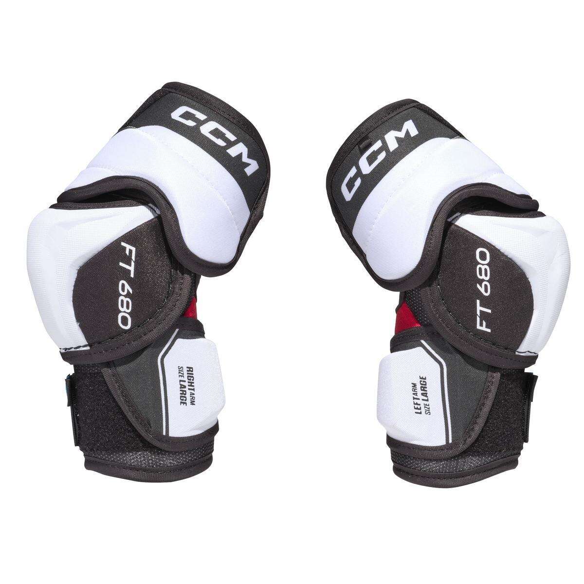 Lokty střední třídy CCM Jetspeed FT680 SR mají novou hybridní třídílnou konstrukcí, která usnadňuje pohyb a věrně kopíruje klouby lokte hokejisty pro perfektní pohyblivost a výbornou ochranu.